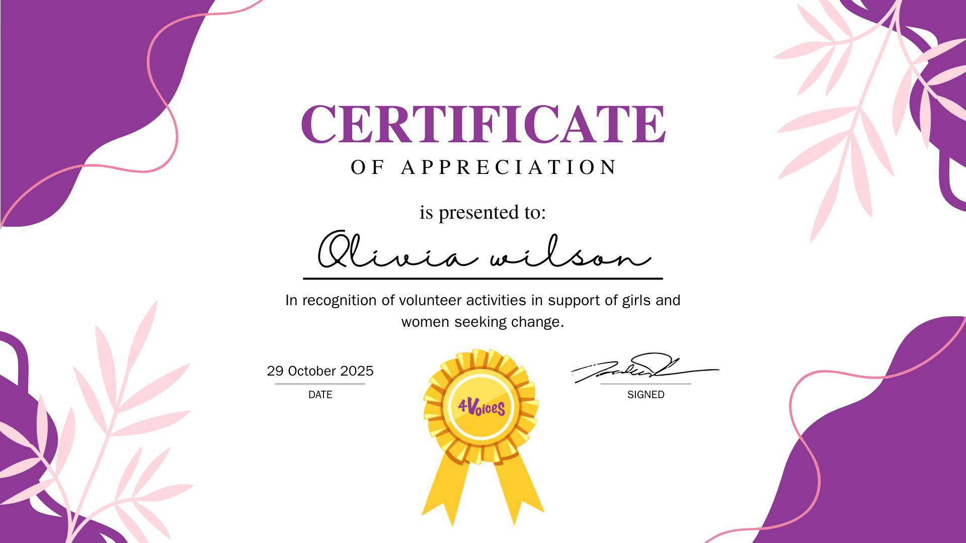 Design work created for 4 Voices, a not-for-profit organisation supporting women in need of connection and community. My role involved designing and developing brand-aligned visual materials that reflect the organisation’s warmth, professionalism, and impact.